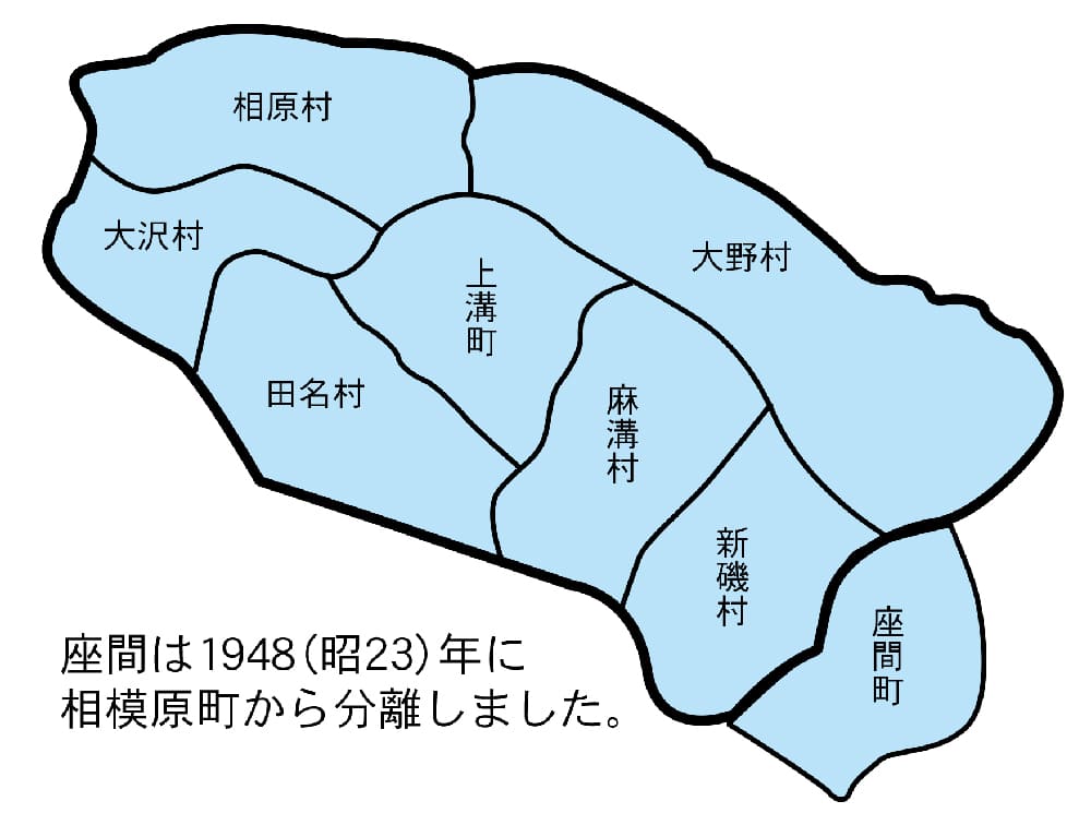 旧相模原市が誕生したのは,1954(昭和29)年のことです。江戸時代までの村が明治の町村制の施行によって7つにまとめられました。その後,座間町を加えた2町6村が,1941(昭和16)年に合併して,相模原町ができました。相模原町は,面積が108.7km2もあり当時としては全国一の広さをもっていたのです。