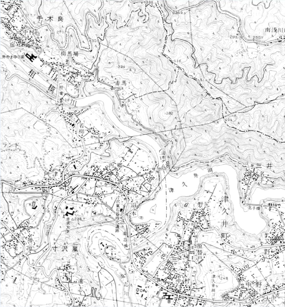 津久井湖周辺の地形(国土地理院発行2万5千分の1地形図「与瀬」)