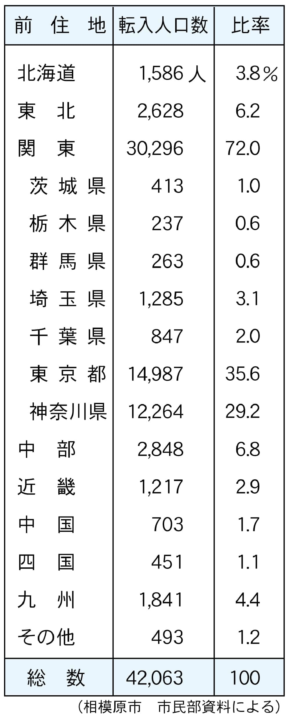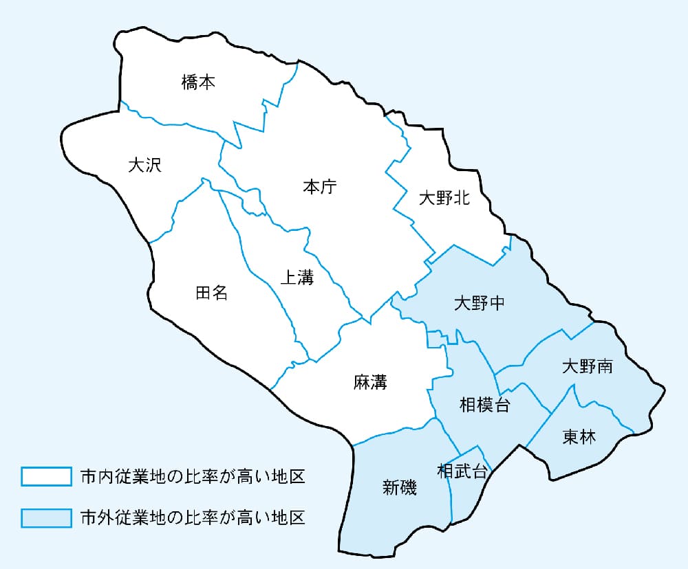 相模原地域の北部には,大企業や工業団地の進出によって,仕事を求めて転入してきた人が多くみられ,相模原地域の南部には鉄道の沿線に住宅団地が建設されたことによって,居住地を求めて都内から移り住んできた人が多くみられました。