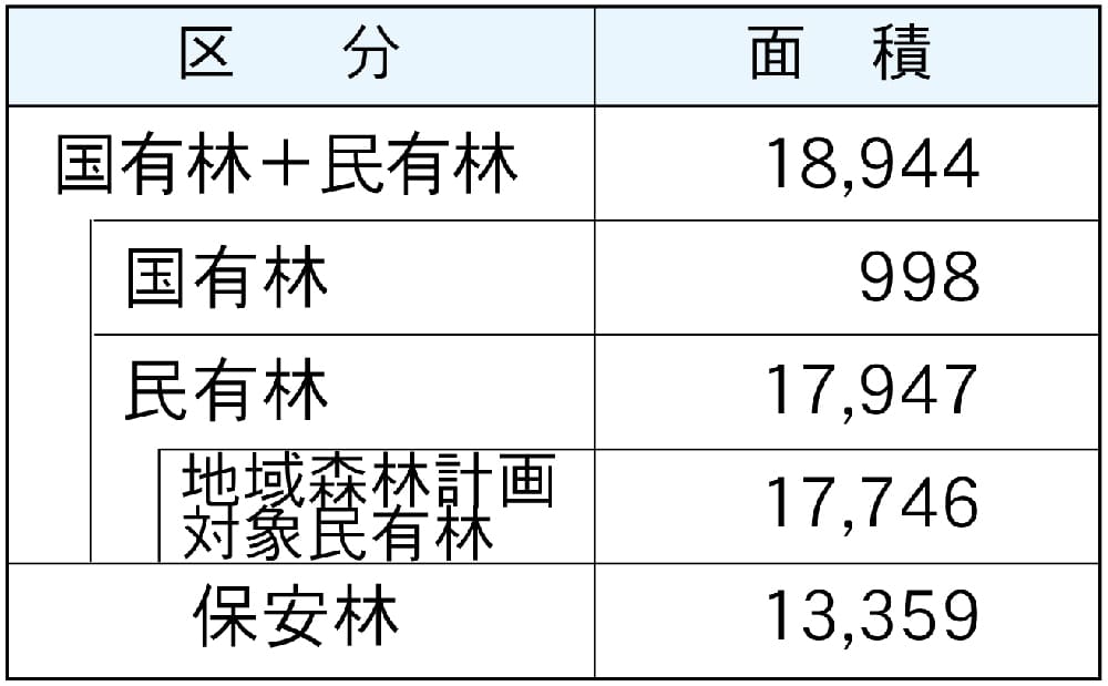 相模原市の" 国有林"と" 民有林"を足し合わせた面積は,18,944ha で,総面積の57.6%を占め," 保安林"の指定面積は,13,359ha で総面積の40.6%となっています。