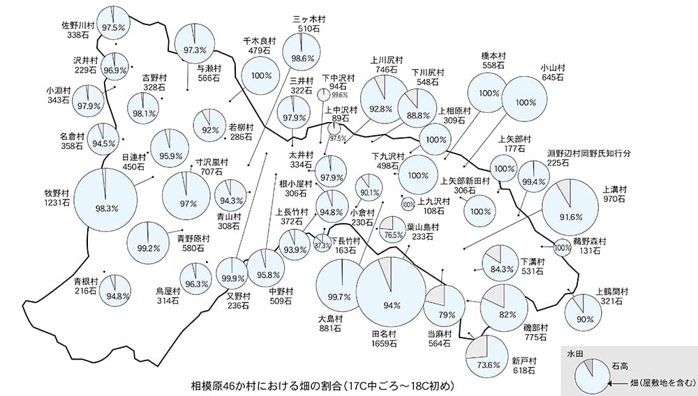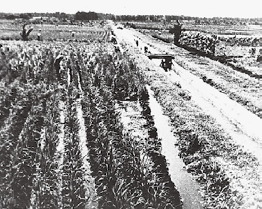 さらに,1948(昭和23)年に始まった相模原開発畑地かんがい事業によって,灌漑(かんがい)用水が作られるようになると,麦類や陸稲(りくとう(おかぼ)) などの栽培が増えていきました。