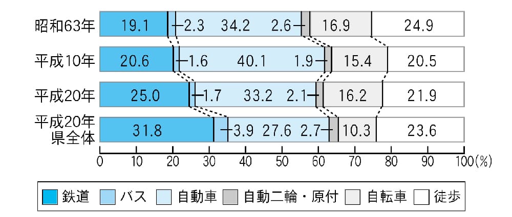 1970(昭和45)年に市内へ転入してきた人の前住地を調べてみると,関東地方の諸県から来た人が全体の72%もありました。なかでも東京都から来た人が最も多く35.6%,ついで県内の他市町村から来た人が29.2%を占めています。東京の近郊都市として相模原が発展してきたようすが,ここでもわかります。