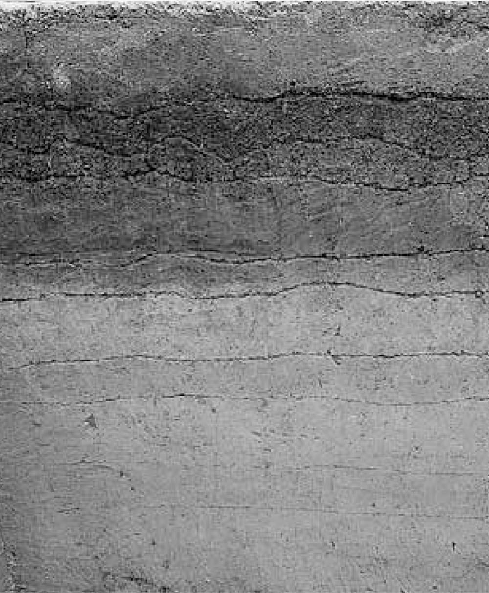 上段(じょうだん),中段(ちゅうだん),下段(げだん)のそれぞれの段丘面は,相模原面,田名原面,陽原(みなばら)面とよばれ,10〜40mの段丘崖(だんきゅうがい)によって,その境ができています。地表は富士山や箱根山などの火山灰が堆積してできた関東ローム層におおわれ,上段にいくほど厚く,厚いところでは20mぐらいの関東ローム層がみられます。