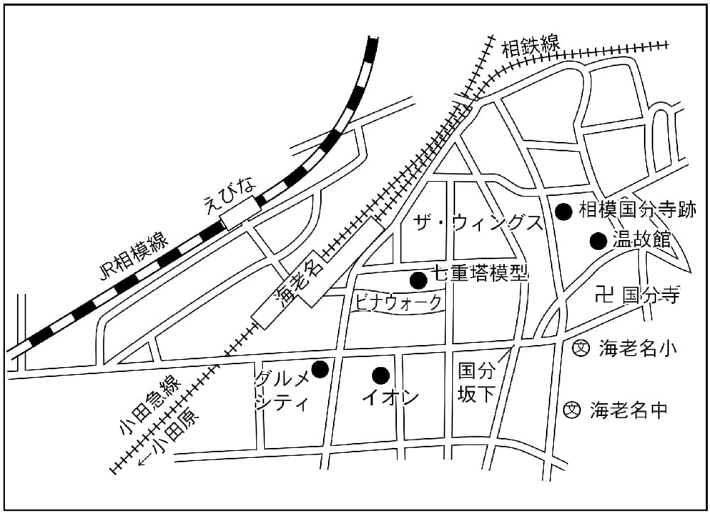 津久井地域には相模川沿いに河岸段丘が発達してきました。この場所は国道20号,JR中央本線,中央自動車道が通過し,東京都と甲信地方(山梨県・長野県)を結ぶ重要な交通路となっています。なかでも,津久井地域の北東部には相模川の南岸に比較的面積の広い段丘が広がり,この段丘に位置する中野地区は人口も多く,津久井地域の行政の中心となっています。