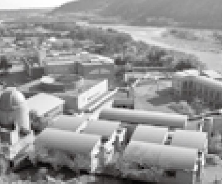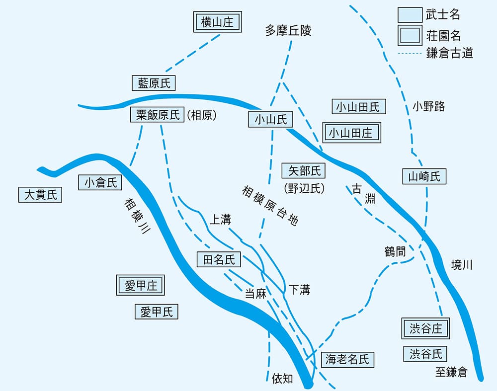上段は相模川の川底との高低差が80m以上もあります。そのため,わずかばかりの「宙水(ちゅうみず)」と境川を除いては水の得にくい所でしたから,戦前までは中段や下段に比べると,人口の少ない地域でした。今では,官公庁(かんこうちょう)をはじめ工場・住宅が広がる市の中心地域となっています。