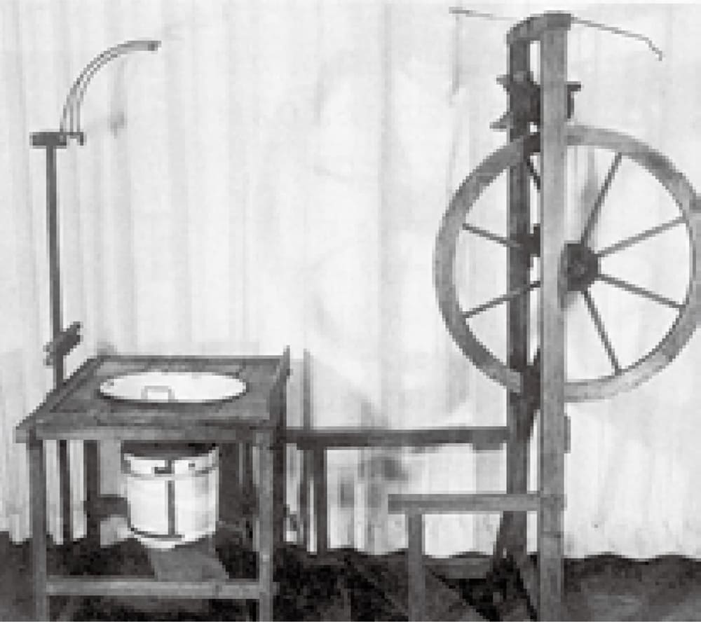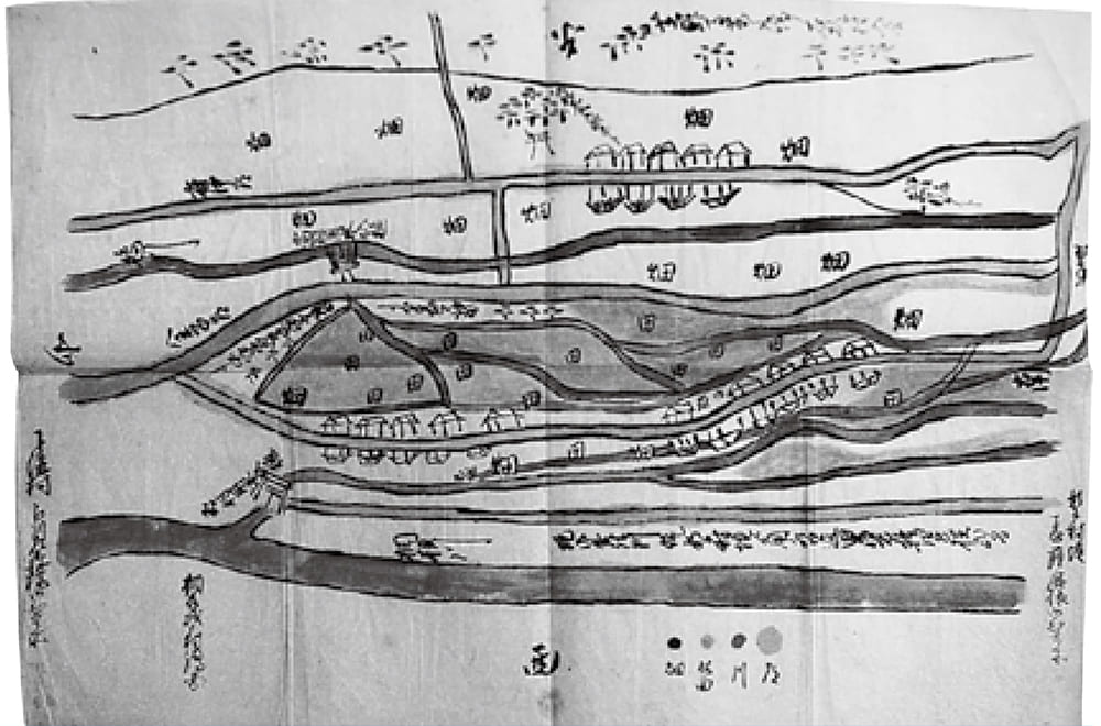 台地上段では,地表から地下水面まで20m~30mの深い井戸を掘らなければなりません。しかし,同じ台地の上でも意外に浅い井戸がみられます。