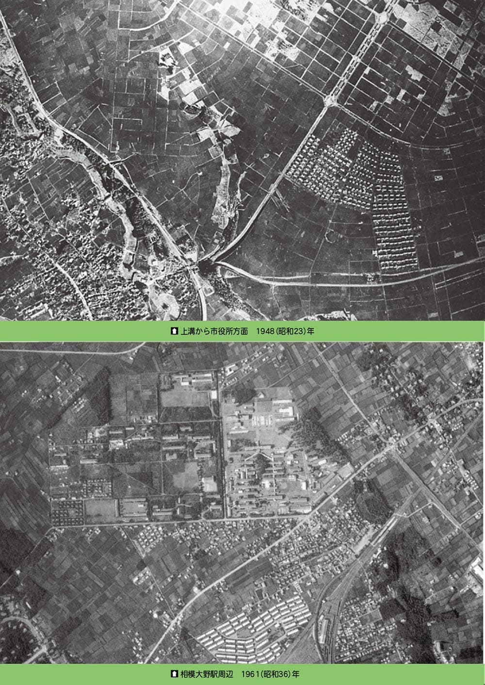 市制施行のころの相模原と今の相模原地域とを,地図や写真で比べてみると,私たちはその変化の大きさに驚かされます。ここでは土地利用の変化から相模原地域の産業の移り変わりを調べてみましょう。